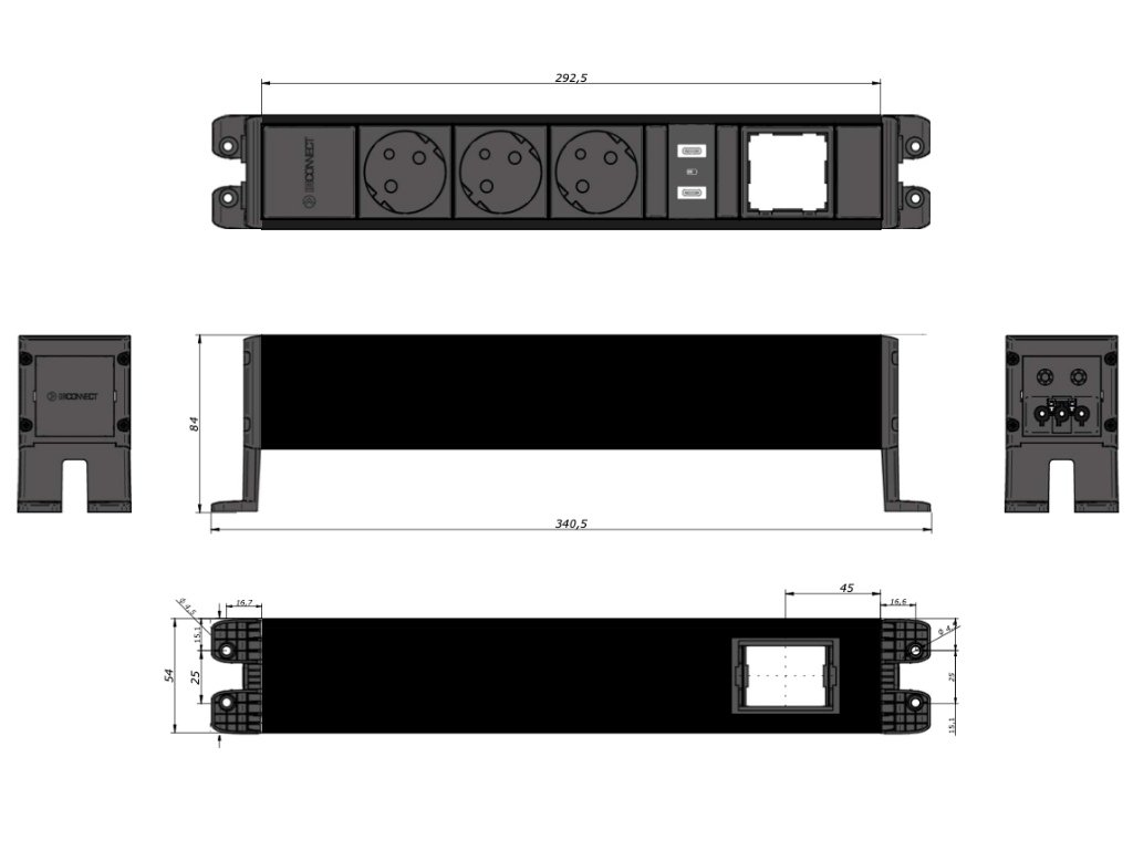 Je určená pro naloženou montáž např. do žlabu pod stůl a průchodku, volně položená apod. Jednotky bez volného modulu jsou dodávané s rovným uchycením a jednotky s volným modulem jsou dodávané se zvýšeným uchycením, aby se dali zespodu zapojit datové kabely (HDMI, USB apod.).